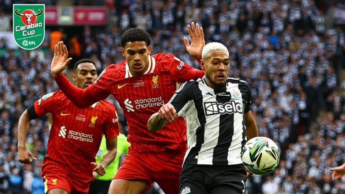 - Pertandingan akhir Carabao Cup 2025 atau Piala Liga Inggris yang mempertemukan Liverpool melawan Newcastle United di Stadion Wembley berkesudahan dengan skor 1-2, Minggu malam (16/3/2025), waktu Indonesia Barat. Meskipun Federico Chiesa berhasil mencetak gol untuk Liverpool, hal itu tidak cukup menyelamatkannya dari kekalahan. Ini menjadi momen istimewa bagi Newcastle karena mereka meraih gelar setelah sekian lama menantikannya.